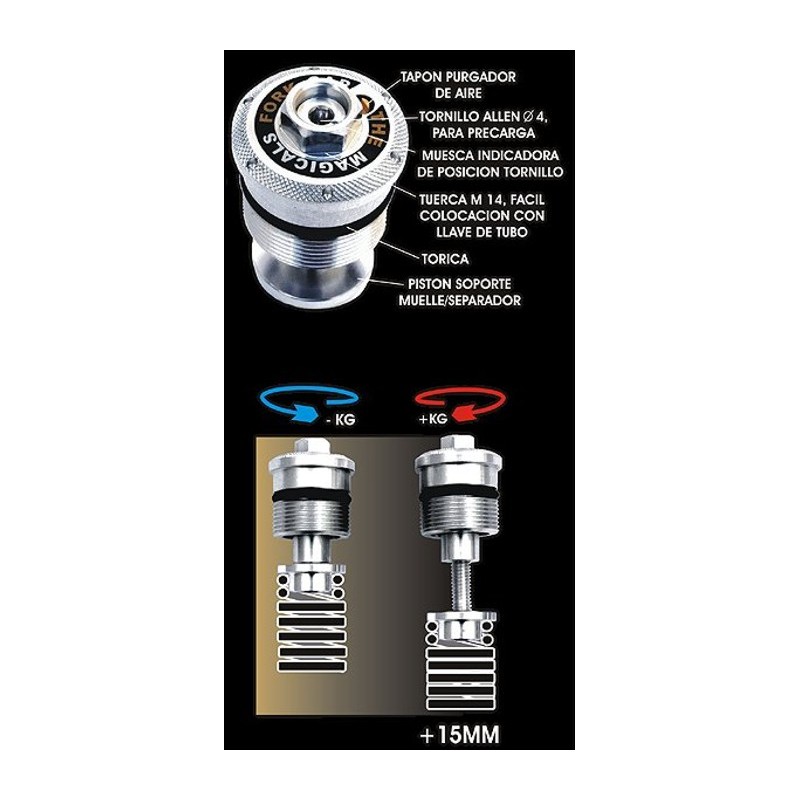 Die Gabelstopfen sind so geschaffen, dass man mit einem Inbusschlüssel die Federvorspannung
